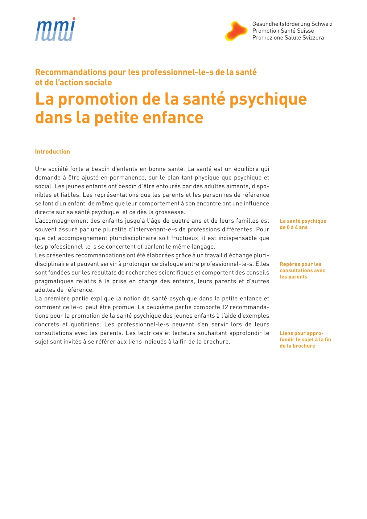 La promotion de la santé psychique dans la petite enfance (Promotion Santé Suisse)
