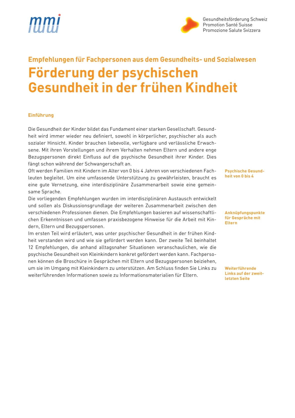 Förderung der psychischen Gesundheit in der frühen Kindheit (Gesundheitsförderung Schweiz)