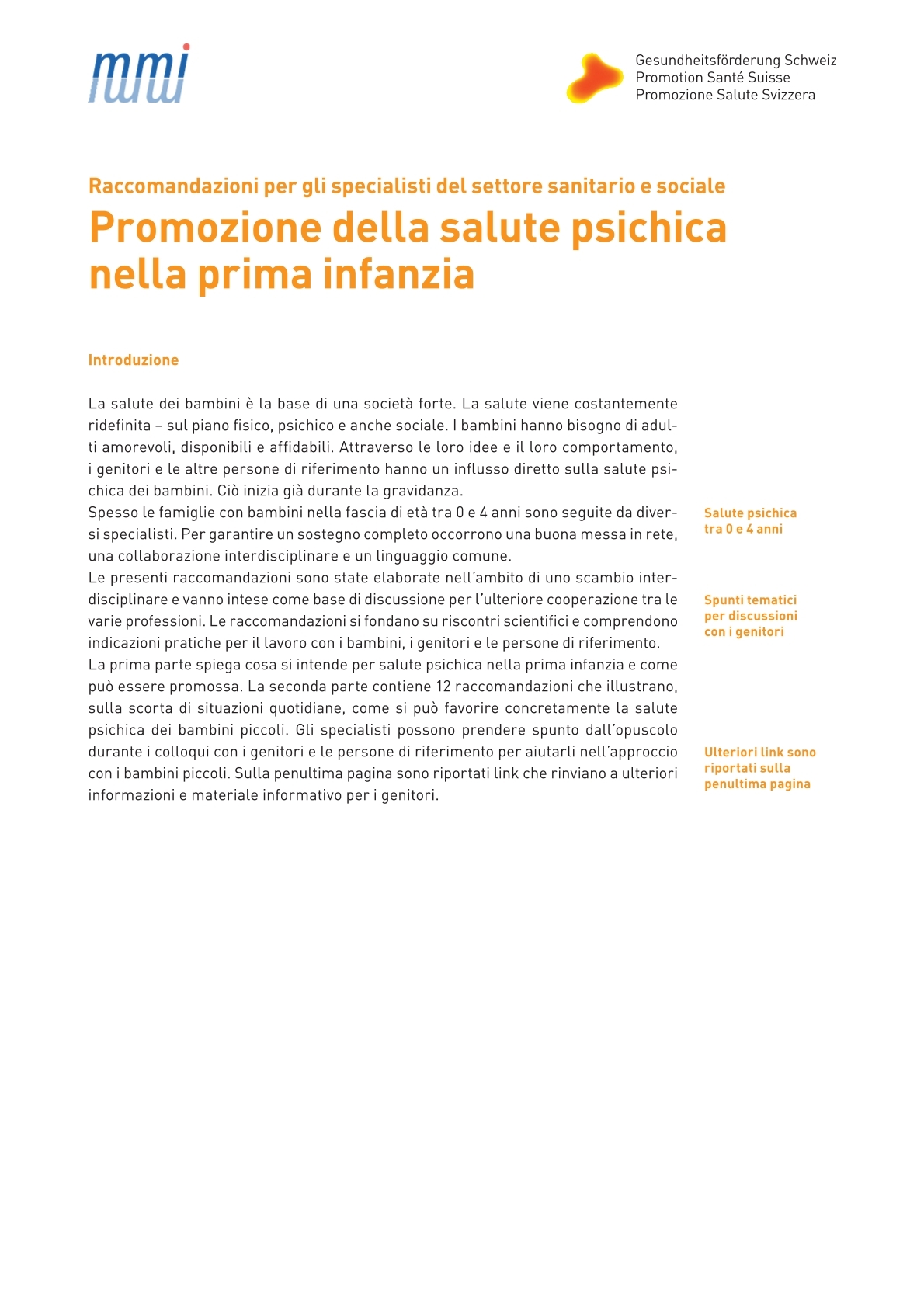 Promozione della salute psichica nella prima infanzia (Promozione Salute Svizzera)